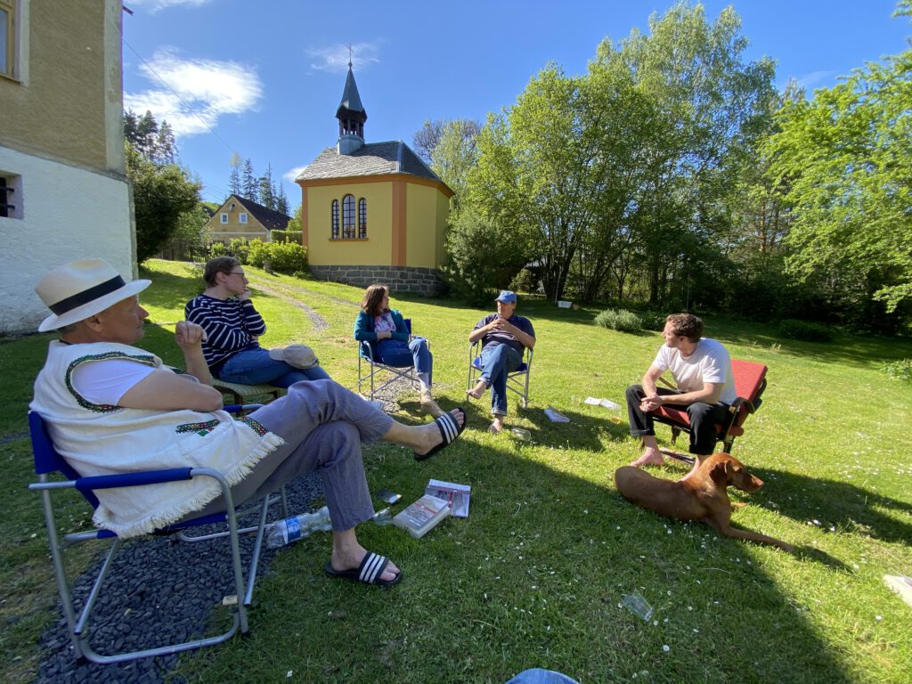 Program probíhá každý den od 10:00 do 16:00, takže zbývá spousta času na odpolední procházku, večeři v místní restauraci (dobré jídlo zde pořídíte za cca 250 Kč na osobu), nebo třeba sledování českého filmu v našem ateliéru na půdě.